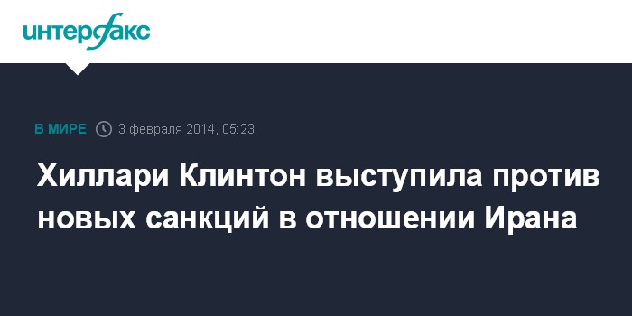 Москва. 3 февраля. INTERFAX.RU - Отставной госсекретарь США Хиллари Клинтон в переписке с американским сенатором-демократом Карлом Левином высказалась против введения новых санкций в отношении Ирана.