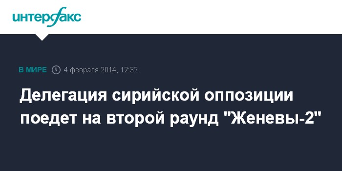 Москва. 4 февраля. INTERFAX.RU - Делегация сирийской оппозиции поедет на второй раунд переговоров в Женеве, который состоится 10 февраля.