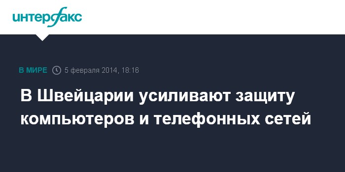 Вашингтон. 5 февраля. INTERFAX.RU - Правительство Швейцарии отдало распоряжение принять меры по укреплению безопасности национальных компьютерных и телефонных систем, сообщает в среду агентство AP.