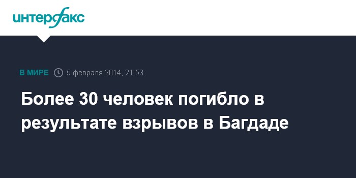 Москва. 5 февраля. INTERFAX.RU - По меньшей мере 32 человека стали жертвами серии терактов в Багдаде, сообщает в среду ливанская газета Daily Star.