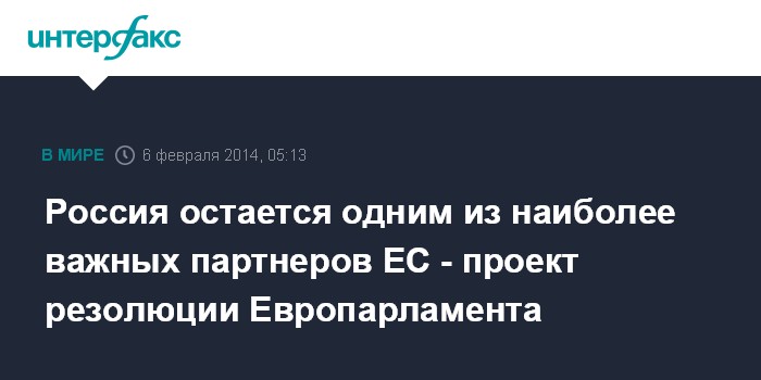 Документ, который будет поставлен на голосование Европарламента в четверг, подтверждает, что "Россия остается одним из наиболее важных партнеров ЕС в строительстве стратегического сотрудничества, и не только в сфере экономических и торговых интересов, но и в стремлении к реализации согласованных демократических ценностей".