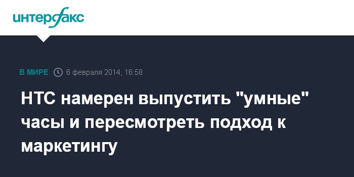 Москва. 6 февраля. INTERFAX.RU - Тайваньский производитель смартфонов HTC Corp. объявил о планах в 2014 году выпустить "умные" часы, а также обновленную версию флагманского смартфона One, поступившего на рынки в минувшем году, сообщает агентство Bloomberg.