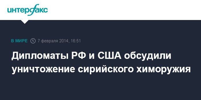 Москва. 7 февраля. INTERFAX.RU - Контроль над вооружениями, безопасность космической деятельности и ситуацию вокруг уничтожения сирийского химоружия обсудил замглавы МИД РФ Сергей Рябков с и.о. старшего заместителя Государственного секретаря США Роуз Геттемюллер.