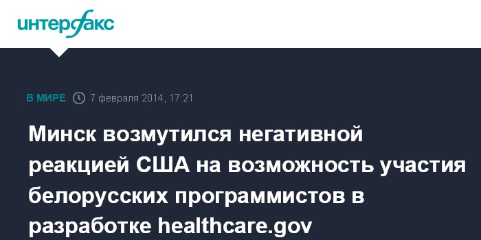 Минск возмутился негативной реакцией США на возможность участия белорусских программистов в разработке healthcare.gov