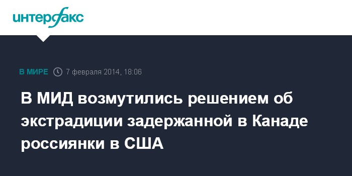 В МИД возмутились решением об экстрадиции задержанной в Канаде россиянки в США