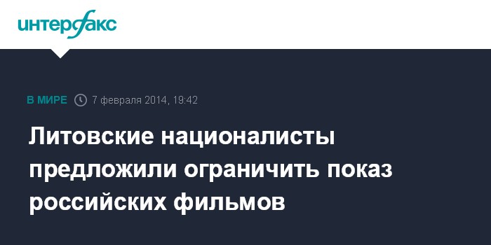 Москва. 7 февраля. INTERFAX.RU - Литовская оппозиционная националистическая партия Союз Отечества - Литовские христианские демократы (СО-ЛХД, консерваторы) предлагают ограничить и маркировать кино- и телепродукцию, произведенную в России, чтобы сократить ее влияние на жителей страны, сообщает в пятницу агентство BNS.