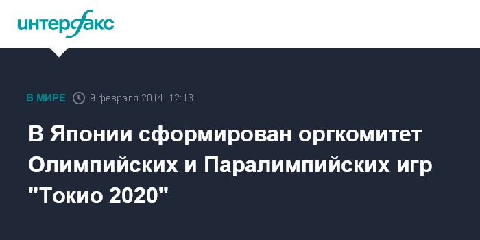 Москва. 9 февраля. INTERFAX.RU - Оргкомитет Олимпийских и Паралимпийских игр "Токио 2020" полностью сформирован и уже начал свою работу, заявил президент оргкомитета Еширо Мори на пресс-конференции в главном медиацентре ХХII зимних Олимпийских игр в Сочи в воскресенье.