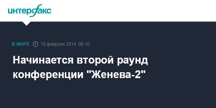 Москва. 10 февраля. INTERFAX.RU - Очередной раунд конференции "Женева-2" по сирийскому урегулированию стартует в понедельник.