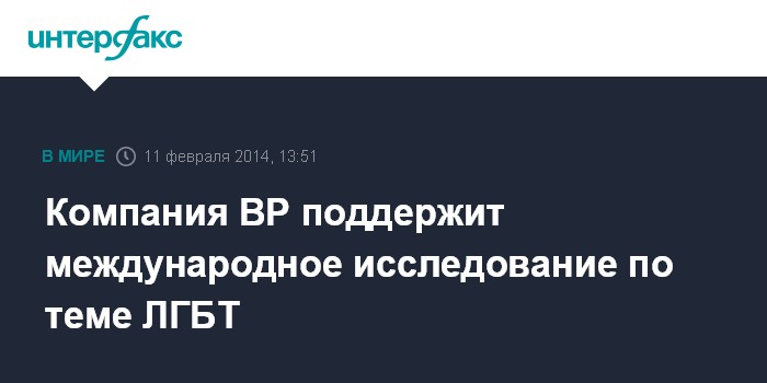 Москва. 11 февраля. INTERFAX.RU - Компания BP решила оказать поддержку международному исследованию проблем, с которыми сталкиваются ЛГБТ-сотрудники транснациональных компаний, и методов их решения, пишет Financial Times.