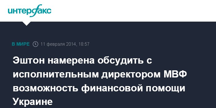 Эштон намерена обсудить с исполнительным директором МВФ возможность финансовой помощи Украине
