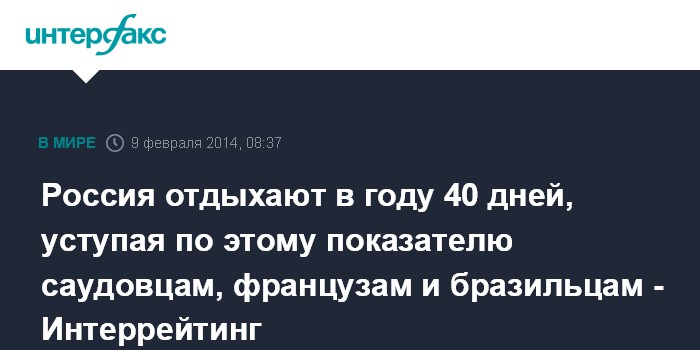 Россия отдыхают в году 40 дней, уступая по этому показателю саудовцам, французам и бразильцам - Интеррейтинг