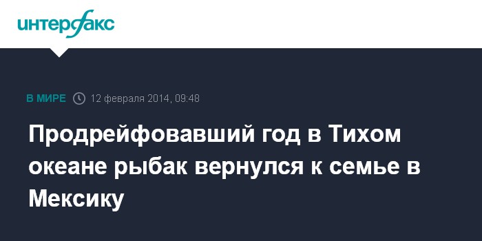 Лондон. 12 февраля. INTERFAX.RU - Мексиканский рыбак, более года дрейфовавший в Тихом океане, вернулся на родину.