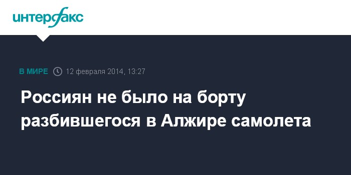 Москва. 12 февраля. INTERFAX.RU - Российских граждан не было на борту военно-транспортного самолета, потерпевшего накануне крушение в Алжире.