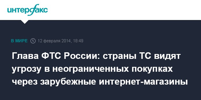Москва. 12 февраля. INTERFAX.RU - Страны Таможенного союза (Белоруссия, Россия и Казахстан - ИФ) видят опасность для экономики в слишком либеральном подходе к приобретению физическими лицами товаров в зарубежных интернет- магазинах.