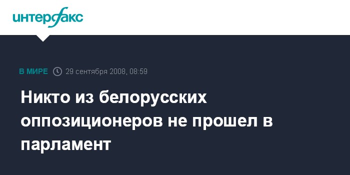 Москва. 29 сентября. INTERFAX.RU - Никто из белорусских оппозиционеров не прошел в состав Палаты представителей, заявила на пресс-конференции председатель ЦИК Лидия Ермошина.