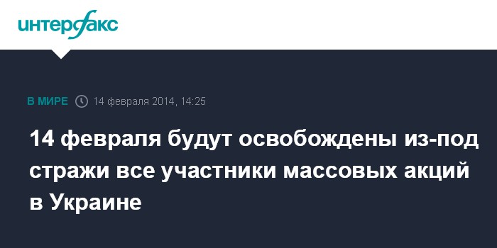 14 февраля будут освобождены из-под стражи все участники массовых акций в Украине