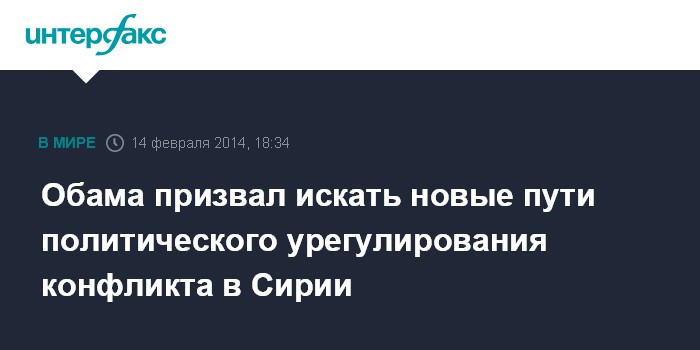 Пекин. 14 февраля. INTERFAX.RU - Президент США Барак Обама настаивает на поиске новых способов политического разрешения сирийского конфликта, заявил в пятницу госсекретарь США Джон Керри.