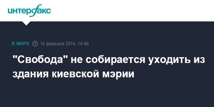 Москва. 15 февраля. INTERFAX.RU - ВО "Свобода" пока не намерена освобождать задние Киевской городской администрации, занятое участниками акций украинской оппозиции 1 декабря, сообщил народный депутат Эдуард Леонов. "Мы как организованная, дисциплинированная политическая сила выполним любое решение, которое будет принято Майданом. Сейчас никакого окончательного решения об освобождении каких-то зданий не существует", - сказал Э.Леонов агентству "Интерфакс-Украина" в субботу.