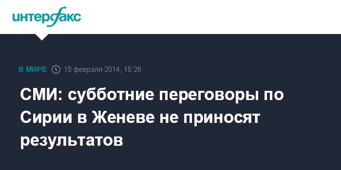 СМИ: субботние переговоры по Сирии в Женеве не приносят результатов