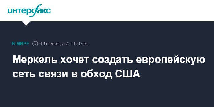 Лондон. 16 февраля. ИНТЕРФАКС - Канцлер Германии Ангела Меркель заявила, что обсудит с Францией возможность создания европейской коммуникационной сети с тем, чтобы электронные письма и другие данные не проходили автоматически через США.