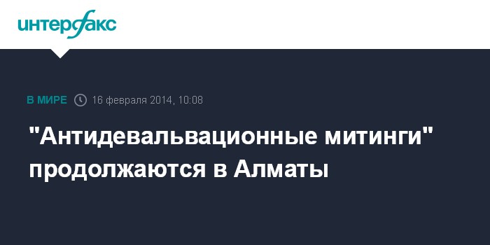 Москва. 16 февраля. INTERFAX.RU - В центре Алматы в воскресенье проходит митинг несогласных с девальвацией тенге, сообщил корреспондент агентства "Интерфакс-Казахстан". Люди собираются на площади Республики возле монумента Независимости.