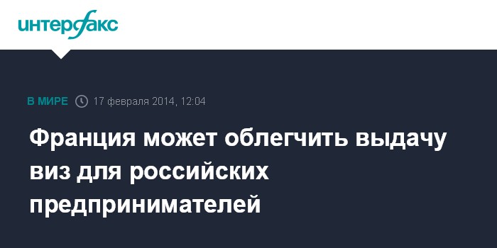 Москва. 17 февраля. INTERFAX.RU - Французские власти рассматривают возможность упрощения процедуры оформления виз для иностранных бизнесменов, в том числе и из России, сообщила министр внешней торговли Франции Николь Брик.