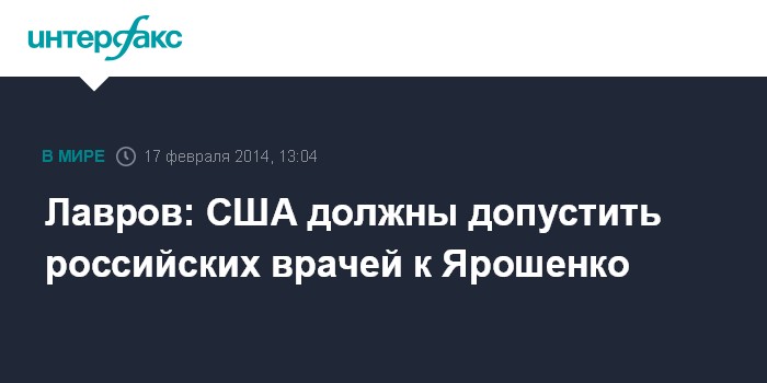 Москва. 17 февраля. INTERFAX.RU - В Москве настаивают на медицинском обследовании находящегося в тюрьме россиянина Константина Ярошенко российскими врачами, заявил глава МИД России Сергей Лавров.