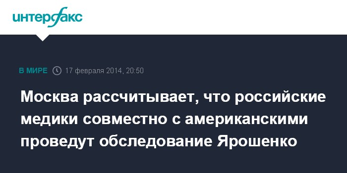 Москва рассчитывает, что российские медики совместно с американскими проведут обследование Ярошенко