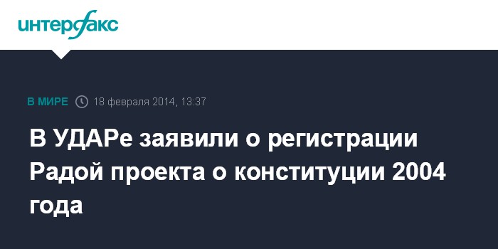 Москва. 18 февраля. INTERFAX.RU - Аппарат Верховной рады зарегистрировал постановление оппозиции о возврате к конституции в редакции 2004 года, заявляют во фракции УДАР.