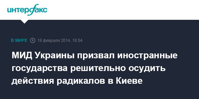 Киев. 18 февраля. INTERFAX.RU - Исполняющий обязанности министра иностранных дел Украины Леонид Кожара обратился к иностранным государствам и международным организациям с призывом дать объективную оценку событиям в Киеве во вторник.