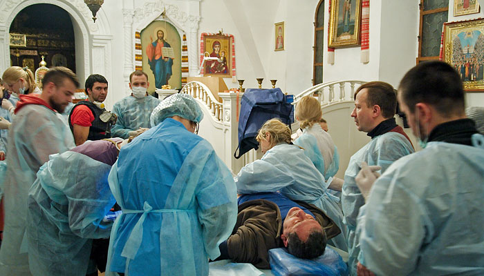 В главный госпиталь Минобороны Украины доставлены 20 сотрудников правоохранительных органов. В пресс-службе военного ведомства заявляют, что у них обнаружены ранения грудной клетки, конечностей, ожоги лица и другие травмы.