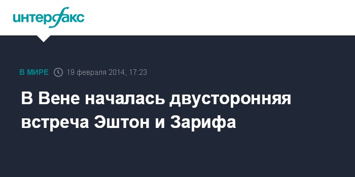 Брюссель. 19 февраля. INTERFAX.RU - Верховный представитель ЕС по международным делам и политике безопасности Кэтрин Эштон проводит в Вене переговоры с главой иранского МИД Джавадом Зарифом, сообщил в среду ее представитель Майкл Манн на своей страничке в сети микроблогов Twitter.