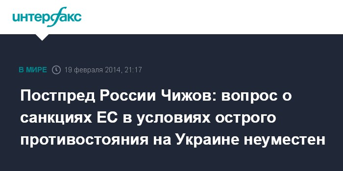 Постпред России Чижов: вопрос о санкциях ЕС в условиях острого противостояния на Украине неуместен