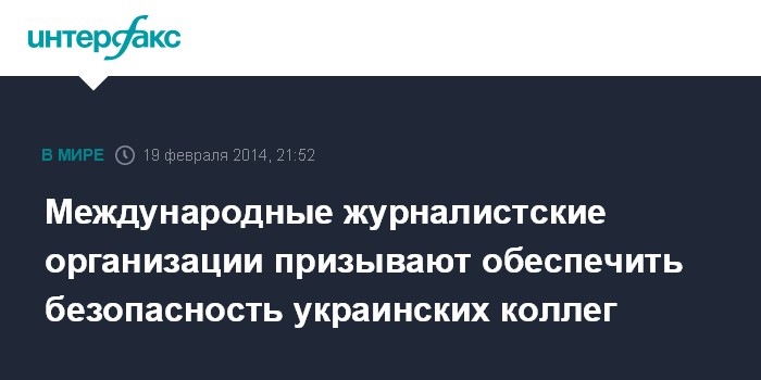 Москва. 19 февраля. INTERFAX.RU - Международные журналисты осуждают насилие в отношении своих украинских коллег и призывают украинские власти обеспечить их безопасность.