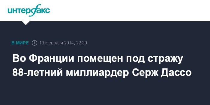 В ближайшее время французские следователи проведут допрос миллиардера. В связи с преклонным возрастом Дассо, французские власти не вправе держать его под стражей более 48 часов, отмечает Le Monde.