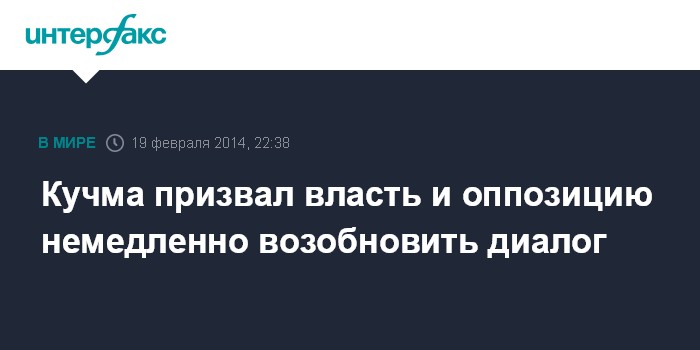 "В происходящем не может быть заинтересована ни одна по-настоящему украинская сила. Остановитесь! Я призываю все стороны к немедленному возобновлению диалога и сам готов приложить все силы, которые могут от меня потребоваться", - резюмировал Кучма.