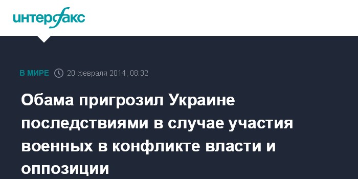 Обама пригрозил Украине последствиями в случае участия военных в конфликте власти и оппозиции