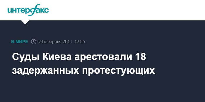 Киев. 20 февраля. INTERFAX.RU - Днепровский и Святошинский суды Киева вынесли решение о содержании под стражей 18 подозреваемым в массовых беспорядках.