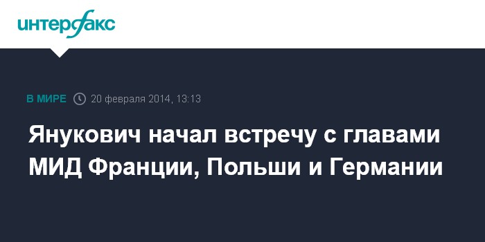 Москва. 20 февраля. INTERFAX.RU - Президент Украины Виктор Янукович проводит встречу с министрами иностранных дел Польши, Германии и Франции, сообщила советник президента, народный депутат (фракция Партии регионов) Анна Герман.