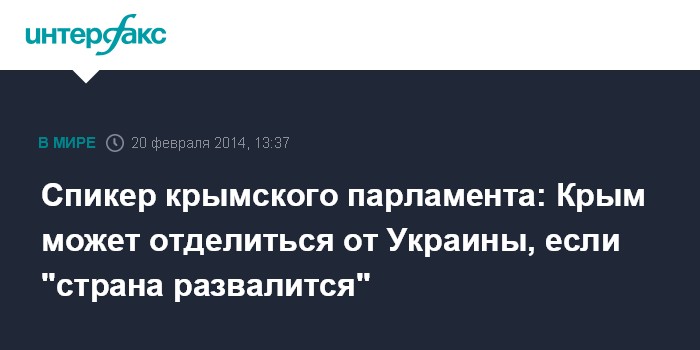 Москва. 20 февраля. INTERFAX.RU - Глава крымского парламента Владимир Константинов не исключает отделения Крыма от Украины в случае обострения ситуации в стране.