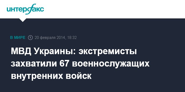 "Во время атак экстремистов на сотрудников органов внутренних дел были захвачены 67 военнослужащих внутренних войск МВД Украины. Их состояние здоровья и дальнейшая судьба пока не известны", - утверждают в министерстве.