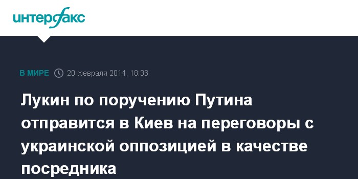 Лукин по поручению Путина отправится в Киев на переговоры с украинской оппозицией в качестве посредника
