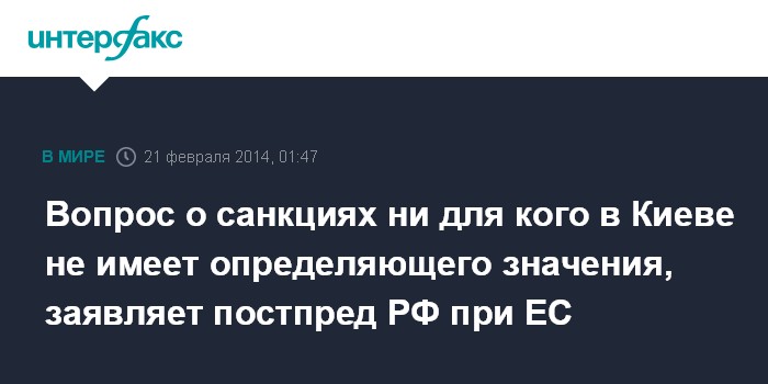 Москва. 21 февраля. INTERFAX.RU - Постпред России при ЕС Владимир Чижов сомневается, что санкции, которые Евросоюз планирует ввести в связи с обострением ситуации на Украине, будут иметь решающее значение.