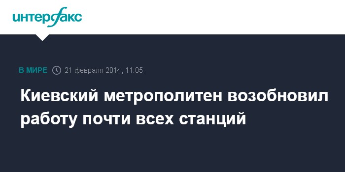 Киев. 21 февраля. INTERFAX.RU - Киевский метрополитен практически полностью восстановил свою работу.