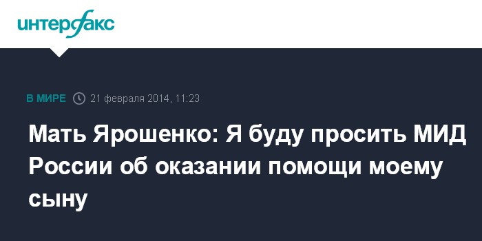 Мать Ярошенко: Я буду просить МИД России об оказании помощи моему сыну