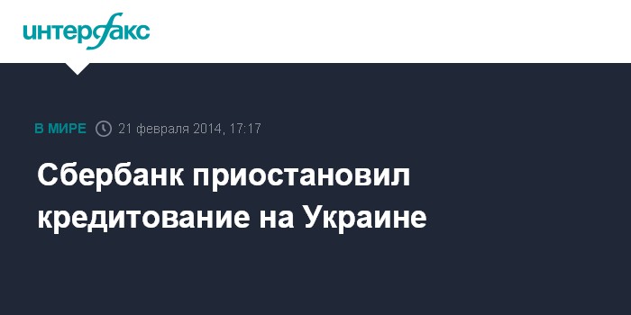 Москва. 21 февраля. INTERFAX.RU - Сбербанк России приостановил кредитование на Украине, заявил журналистам глава Сбербанка Герман Греф.
