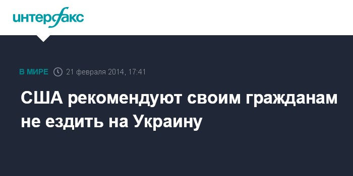 Москва. 21 февраля. INTERFAX.RU - Госдепартамент США рекомендует американцам без особой необходимости не ездить на Украину из-за продолжающихся столкновений, передает в пятницу агентство AP.