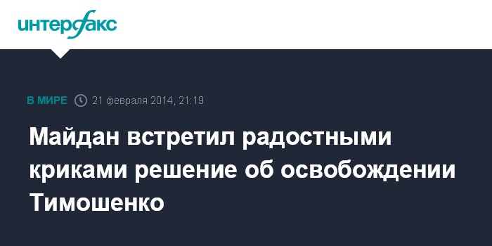 Москва. 21 февраля. INTERFAX.RU - Столичный Майдан радостно встретил решение парламента о декриминализации статей, по которым осуждена экс-премьер-министр Юлия Тимошенко.