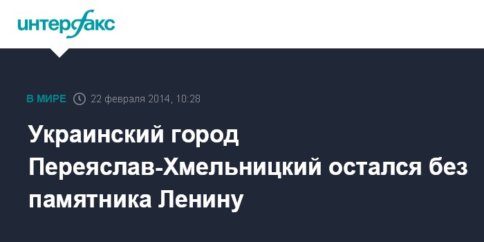 Москва. 22 февраля. INTERFAX.RU - В районном центре Переяслав-Хмельницкого в Киевской области Украины неизвестные сбросили с постамента памятник Ленину, сообщает интернет-издание Gazeta.ua.