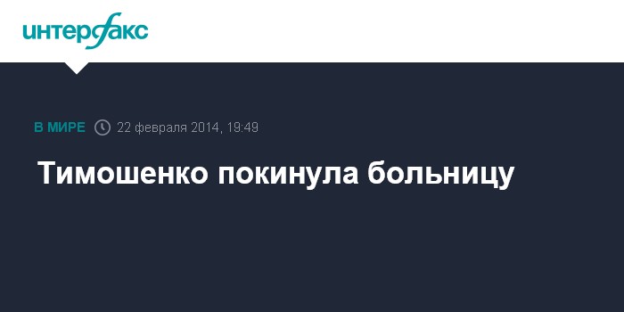 Москва. 22 февраля. INTERFAX.RU - Экс-премьер Юлия Тимошенко покинула территорию ЦКБ№5 на автомобиле.
